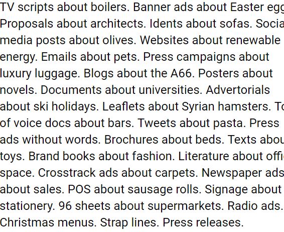 Whether it's coming up with a campaign, writing a website, creating a brand or anything else, if you want ideas and/or copy, let’s talk. (That's my email address up there.)
